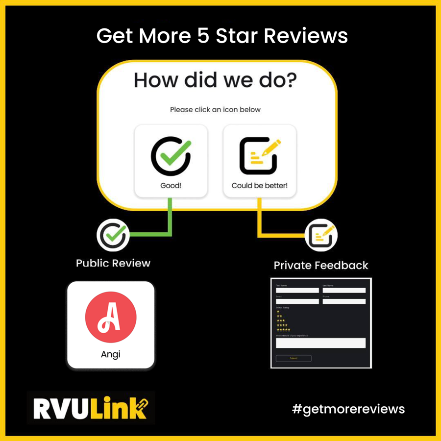 RVU Link works seamlessly with Angie's List to increase customer reviews