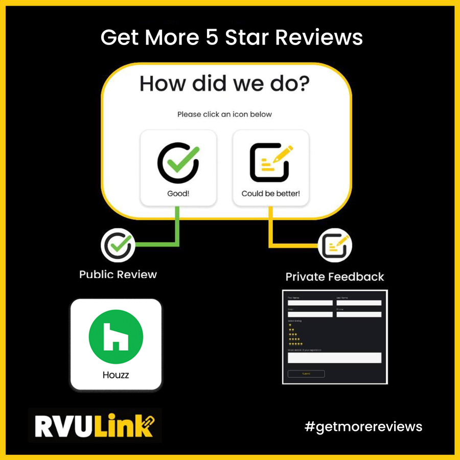 RVU Link works seamlessly with Houzz to increase customer reviews